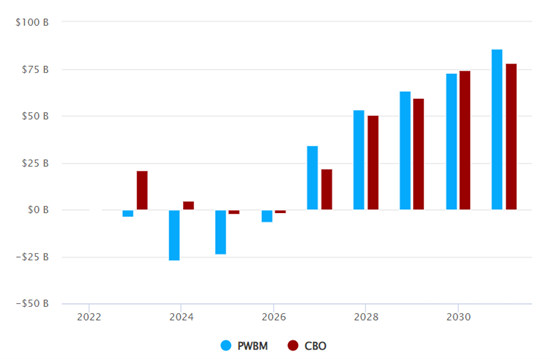 Sources: Penn Wharton Budget Model, Congressional Budget Office